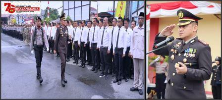 Upacara Puncak Peringatan Hari Bhayakara ke-78, Senin 1 Juli 2024 di halaman Mapolresta Deli Serdang