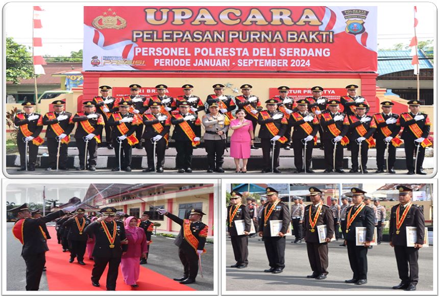 Menurut Kapolresta Deli Serdang itu, upacara pelepasan Purna Bhakti personil Polresta Deli Serdang yang telah memasuki masa pensiun itu merupakan bentuk penghargaan yang tulus dan rasa hormat setinggi-tingginya dari Institusi Polri kepada personel yang telah melewati perjalanan pengabdian yang panjang dengan penuh kesetiaan, pengorbanan dan penuh pengabdian kepada masyarakat, Bangsa dan Negara Republik Indonesia.