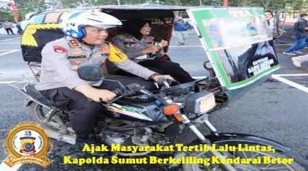 Saat itu, Kamis 29 Desember 2022 di Mapolda Sumut, disela-sela pertemuan silaturahminya bersama ratusan abang penarik beca bermotor (betor), tampak Perwira Polisi berpangkat Bintang Dua itu tidak canggung mengendarai betor berkeliling Mapolda Sumut sembari menyampaikan sosialisasi tertib berlalu lintas.