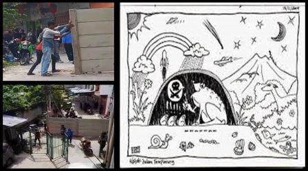 Pasalnya, tembok yang dibangun tanpa hak oleh sekelompok orang suruhan diatas akses jalan warga di Komplek Katamso Square itu, hingga kini masih berdiri kokoh.