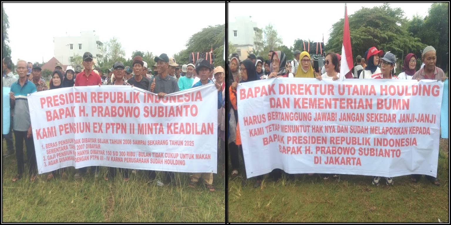 Tuntut Keadilan, Puluhan Pensiunan Eks PTPN 2, Demo Kantor PTPN 1 Regional 1Tanjung Morawa