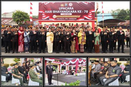 Upacara Puncak Peringatan Hari Bhayakara ke-78 yang digelar, Senin 1 Juli 2024 di halaman Mapolresta Deli Serdang