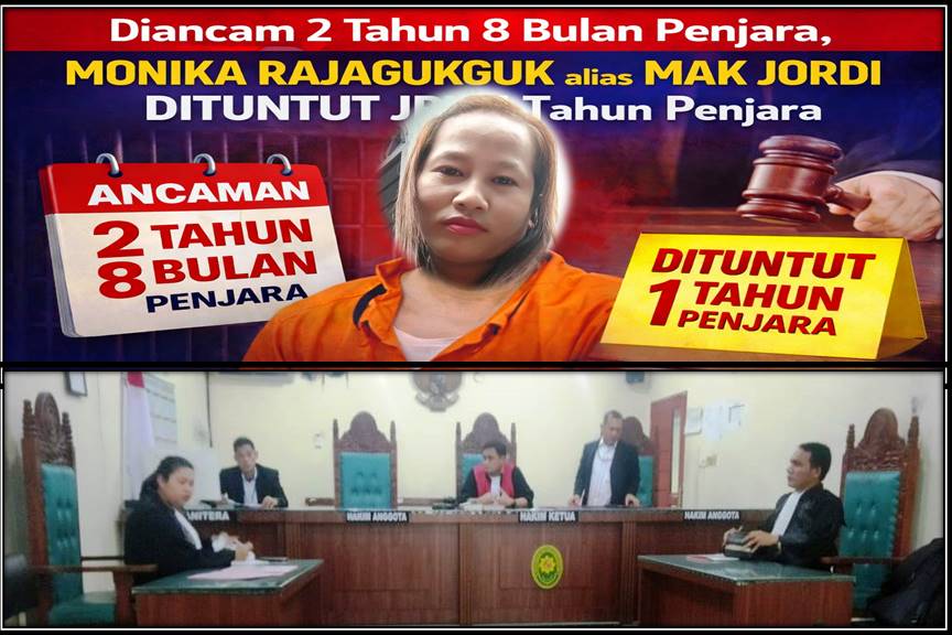 Sementara itu, tanpa didampingi Hiras Sitanggang, SH,MM dan Widi Astuti, SH selaku majelis hakim anggota, Endra Hermawan, SH,MH selaku majelis hakim ketua saat menggelar sidang dengan agenda pembacaan surat tuntutan JPU secara virtual atau online yang digelar Senin 09 February 2026, JPU (Yuspita Indah Br Ginting, SH) yang digantikan Amelia, SH menuntut terdakwa Monika Br Rajagukguk alias Mak Jordi dengan tuntutan hukuman pidana penjara selama 1(satu) tahun.