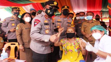 SATYA BHAKTI ONLINE – SAMOSIR | Sekaligus melaksanakan kunjungan kerja (kunker) nya ke Kabupaten Samosir, Senin (3/5/21), Kepala Kepolisian Daerah (Kapolda) Sumatera Utara (Sumut), Irjen Pol RZ Panca Putra Simanjuntak berkesempatan meninjau vaksinasi bagi masyarakat lanjut usia (lansia) setempat.
