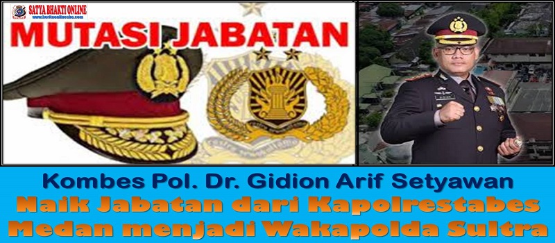 Sementara itu, Kombes Pol. Dr. Gidion Arif Setyawan, SIK, SH, MHum (NRP 75060704) yang menjabat Kapolrestabes Medan, Polda Sumut, dimutasi dan diangkat dengan jabatan baru sebagai Wakapolda Sulawesi Tenggara (Sultra) menggantikan Brigjen Pol. Amur Chandra Juli Buana, SH, MH (NRP 68070333) yang dimutasi dan diangkat dengan jabatan baru sebagai Kadivhubinter Polri..