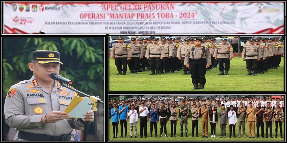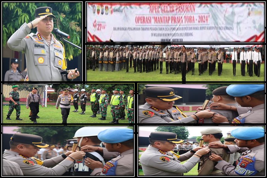 Demikian terungkap saat Kapolresta Deli Serdang (Kombes Pol. Raphael Sandhy Cahya Priambodo) memimpin upacara Apel Gelar Pasukan Ops Mantap Praja Toba 2024, Senin 19 Agustus 2024 di Lapangan Hijau Mapolresta Deli Serdang.