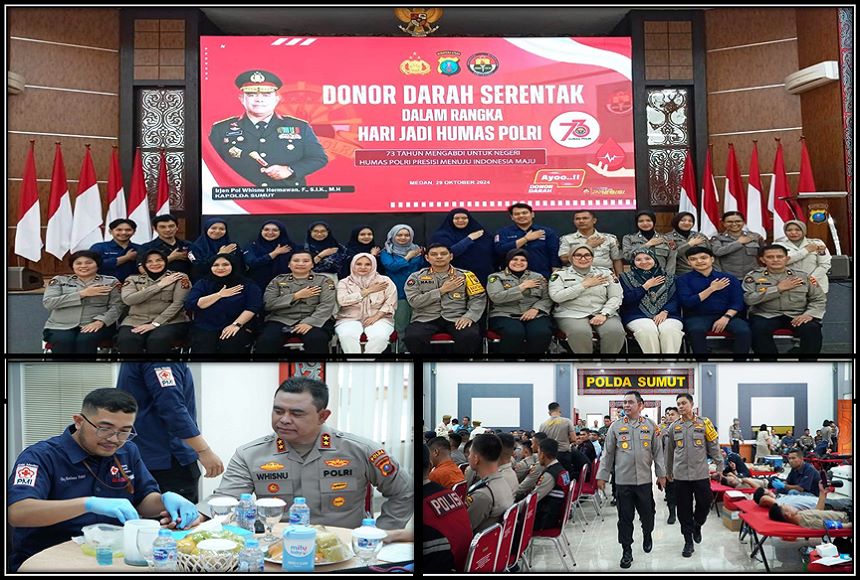 Saat itu, Selasa 29 Oktober 2024 di Aula Tribrata Mapolda Sumut, kegiatan bakti sosial donor darah yang salah satunya bertujuan membantu Palang Merah Indonesia (PMI) Kota Medan yang membutuhkan stok darah itu, dihadiri Kapolda Sumut (Irjen. Pol. Whisnu Hermawan) didampingi Wakapolda Sumut (Brigjen Pol Rony Samtana) bersama pejabat utama Polda Sumut.