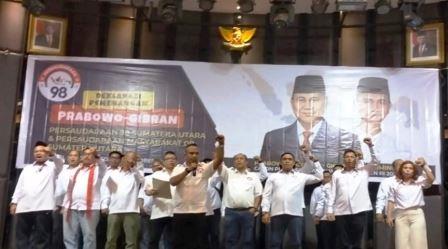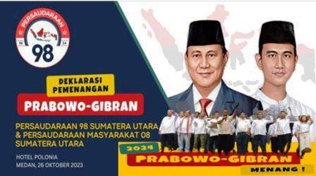 Bergerak cepat, sejumlah aktivis 98 yang tergabung dalam Persaudaraan 98 Sumatera Utara (Sumut) sepakat untuk memenangkan pasangan Prabowo-Gibran di Pemilihan Presiden (Pilpres) 2024 yang akan digelar 14 Februari 2024 mendatang.