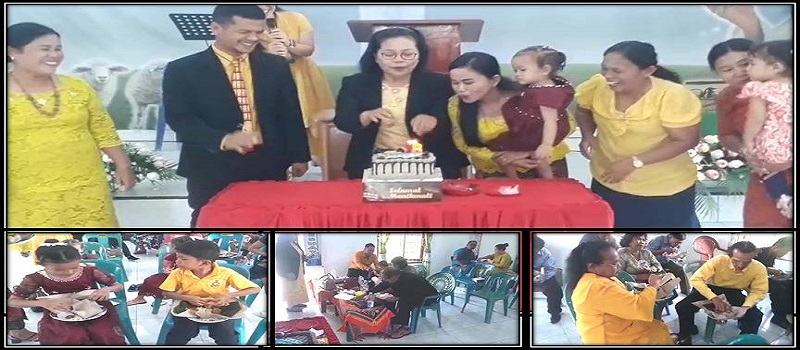 Kemudian, sebagai simbol rasa syukur jemaat atas penyertaan Tuhan, momen puncak perayaan diwarnai dengan peniupan lilin dan pemotongan kue ulang tahun sambil menyanyikan lagu “Selamat Ulang Tahun”.