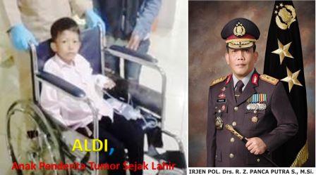 Wujud Kasih Sayangnya, Kapolda Sumut Fasilitasi Pengobatan Aldi, Anak Penderita Tumor Sejak Lahir. (FOTO : SBO/IST)